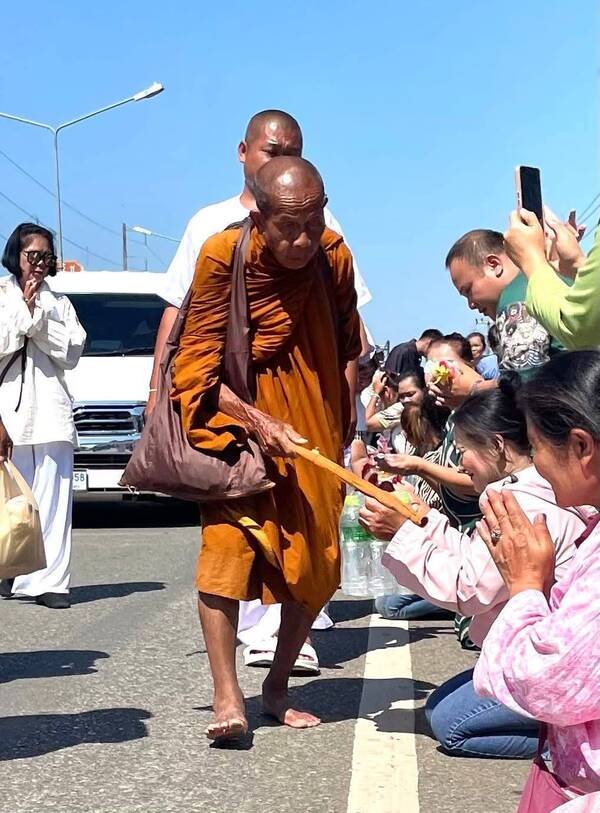 ทว่าพลังใจของหลวงตาแข็งดุจศิลา—เวลา 13.30 น. วันที่ 16 พ.ย.2568 หลวงตาได้ลุกเดินออกจากโรงพยาบาล พร้อมออกธุดงค์ต่อไปยังวัดอินทร์เตชะสว่างวราราม ต.หนองไขว่ ระยะราว 5 กิโลเมตร ท่ามกลางญาติโยมที่มารอต้อนรับ กราบถวายกำลังใจและน้ำน้ำใจริมสองฟากทาง โดยมีรถโรงพยาบาลหล่มสักและอาสามูลนิธิร่วมกตัญญูคอยดูแลความปลอดภัยใกล้ชิด