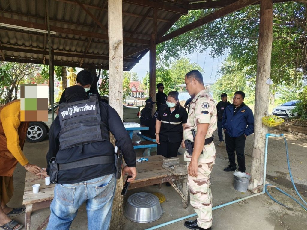 เจ้าหน้าที่ได้ลงพื้นที่ตรวจค้นและคัดกรองภายในวัดในตำบลภูน้ำหยด จำนวน 9 แห่ง โดยตรวจปัสสาวะพระสงฆ์รวม 15 รูป ผลการตรวจพบพระ 1 รูปมีพฤติการณ์เสพยาเสพติด และจากการตรวจค้นพบของกลางยาบ้า 38 เม็ด