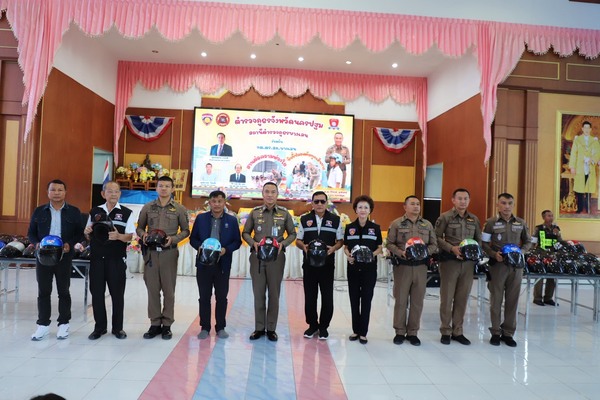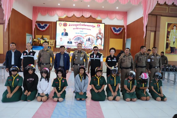 ตำรวจภูธรจังหวัดนครปฐมร่วมกับ สภ.บางเลน และ กต.ตร. จัดทำโครงการ พร้อมแจกหมวกนิรภัยมาตรฐาน จำนวน 325 ใบ ให้