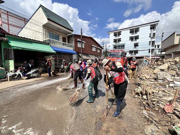 ชุดที่ 1 ประกอบด้วยกำลังพล อส. จำนวน 36 นาย ปฏิบัติหน้าที่ร่วมกับ ปภ.จังหวัดสุพรรณบุรี และร้อย.อส.จ.หนองบัวลำภู มุ่งเคลียร์เส้นทางการจราจร เก็บกวาดสิ่งของเครื่องใช้ที่พังเสียหายในพื้นที่รับผิดชอบบริเวณ ซอย 2 เทศาพัฒนา เพื่อให้สัญจรได้ตามปกติอีกครั้ง