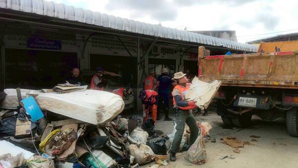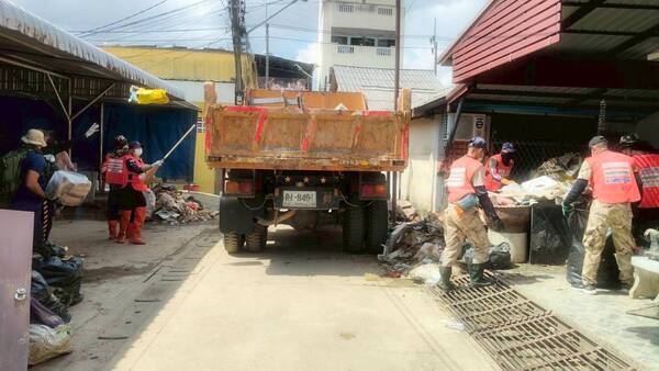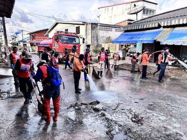 ชุดที่ 2 ประกอบด้วยกำลังพล อส. จำนวน 11 นาย ปฏิบัติร่วมกับเทศบาลสำโรง อบจ.สงขลา และ สนง.ปภ.เพชรบูรณ์ ลงพื้นที่ ซอยพิมพ์สีทอง ช่วยฟื้นฟูและเก็บเศษปฏิกูลหลังน้ำลด ซึ่งการปฏิบัติงานเป็นไปด้วยความเรียบร้อย กำลังพลมีขวัญและกำลังใจดี พร้อมเดินหน้าช่วยเหลือประชาชนอย่างเต็มกำลัง