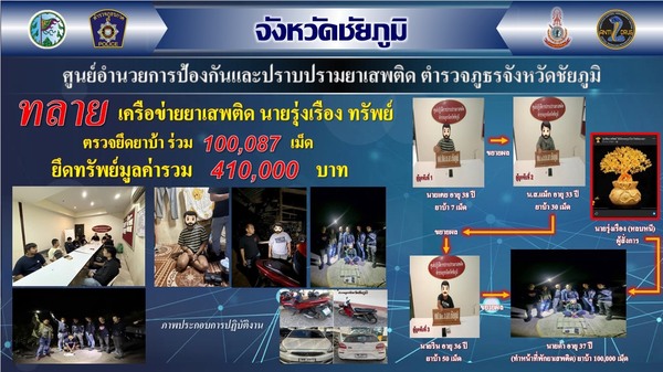 ตำรวจชัยภูมิเปิดปฏิบัติการเชิงรุก ไล่บี้เส้นทางยาเสพติดข้ามชาติจากลาว บุกแหล่งพักยา อ.เกษตรสมบูรณ์ รวบ 4 ผู้ต้องหา พร้อมของกลางล็อตใหญ่ เตรียมขยายผลถึงตัวการ